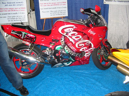 This year we had more bikes, custom chrome, leather, and accessories than ever before. Roger Bourget was on hand Saturday and Sunday signing autographs in the American Dream booth. The AMA Merchandise Semi was on site for the whole weekend, as well as the Antique Motorcycle Club's vintage bike display. It was a great show and we're already looking forward to a fantastic one in 2005. Keep a look out for the dates and mark your calendar early.